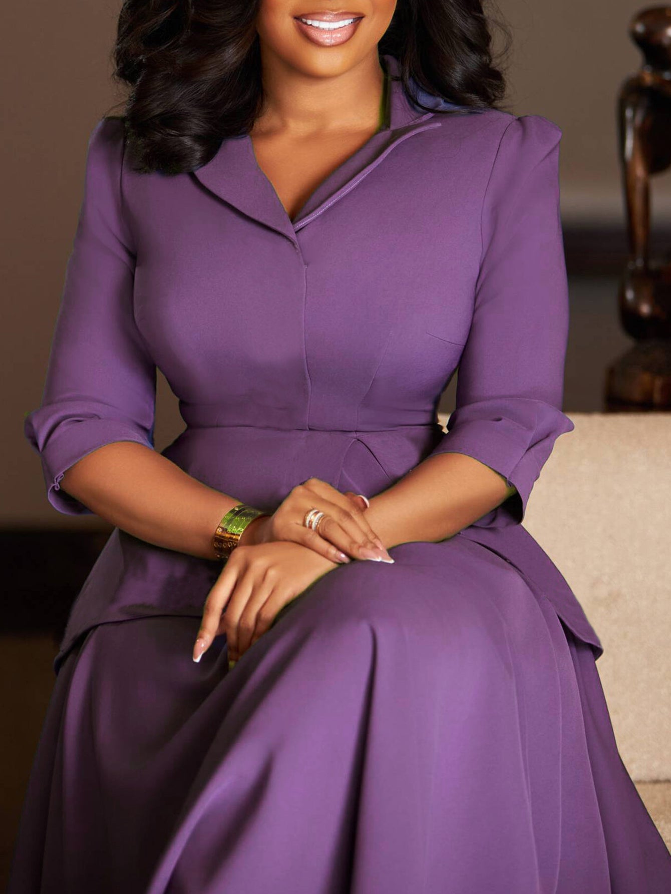 We're glad you've clicked on our 1688 available a-line dress as we're really into its elegant vibes! The lapel and 3/4 length sleeve cut make this a great choice for any stylish girl.