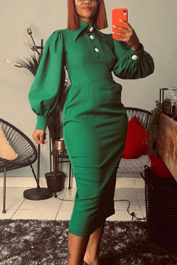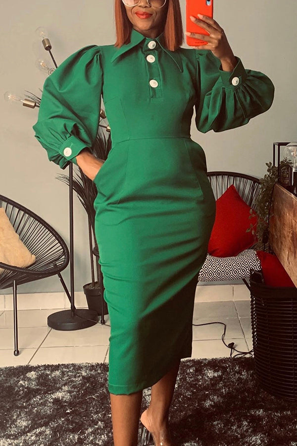 We're glad you've clicked on our new button thru dress as we're really into its stylish vibes! The lapel and long sleeve cut make this a great choice for any stylish girl.