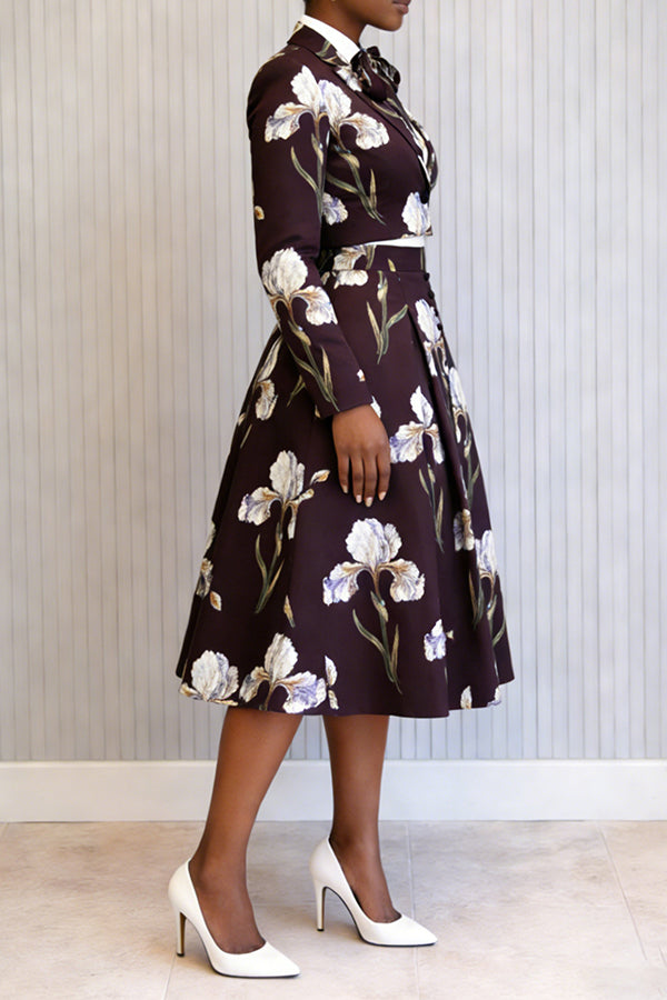 This structured, tailored suit is a timeless staple in African American church fashion. The deep purple color, combined with the elegant iris pattern, exudes both feminine grace and a sense of dignity. This combination of "large floral prints" and "exquisite tailoring" perfectly aligns with the sophisticated aesthetic that African American women seek when attending church services, weddings, or community events.