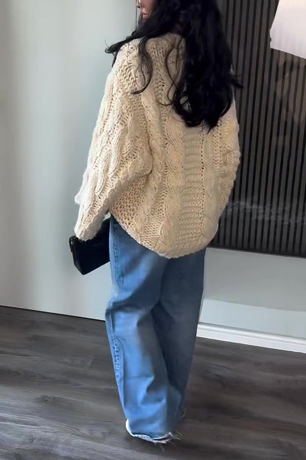 Stay on trend this season in our new cozy, round neck sweater. We especially love the solid color fabric and think this piece will be a new favorite in your closet!