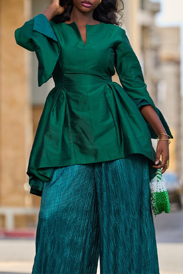 Stylish Trumpet Sleeve Top & Pants Set